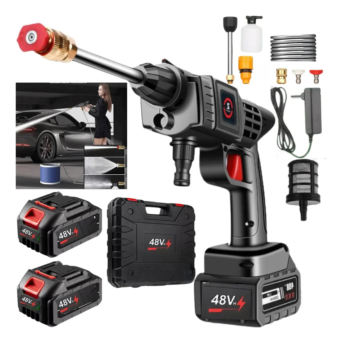 - 1x Pistola Lavadora de Alta Pressão Profissional Recarregável